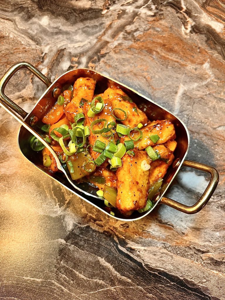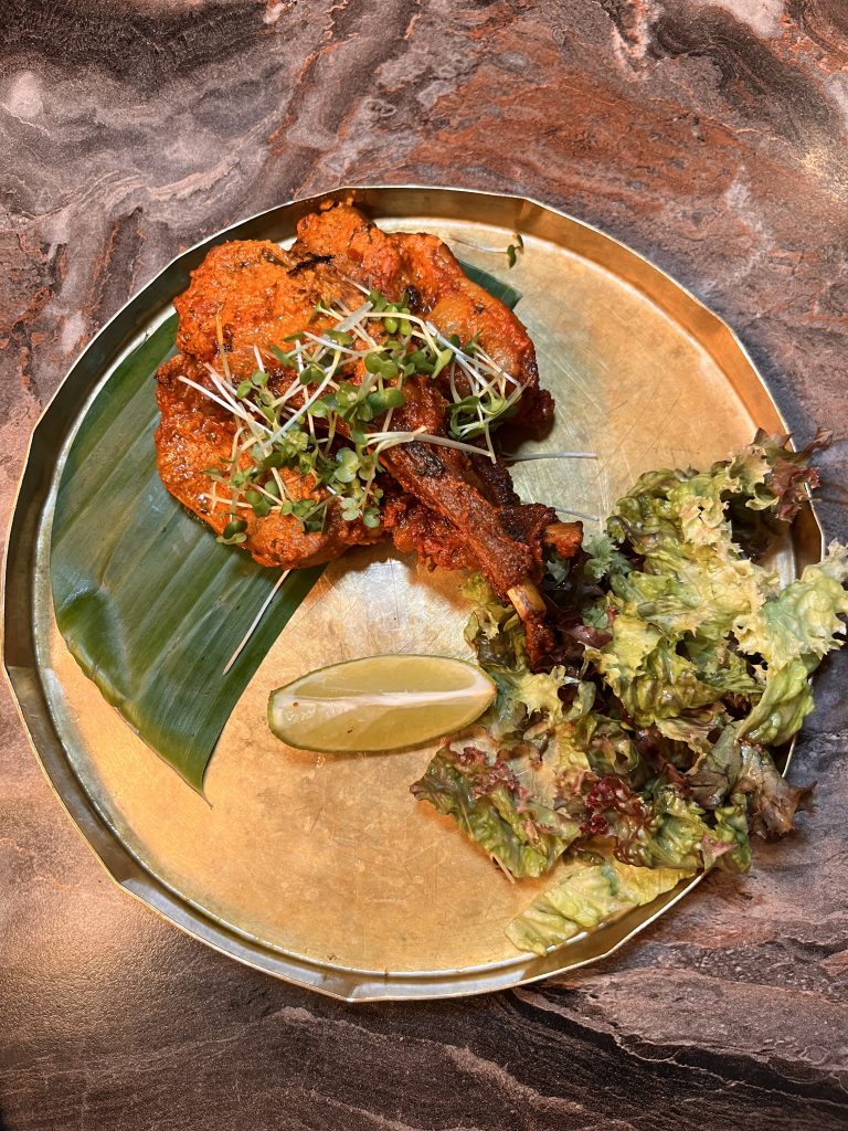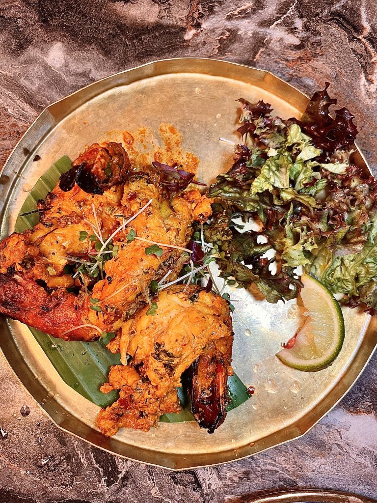Tandoori prawns arrive with crisp edges and tender flesh, brightened by a citrusy hit. Chilli paneer delivers well-spiced flavour, though a touch more crispness wouldn’t go amiss, while lamb chops offer deep seasoning and a good char, even if they lean a little firm.